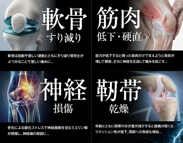 軟骨, 筋肉, 神経, 靭帯の4つにアプローチしてくれる